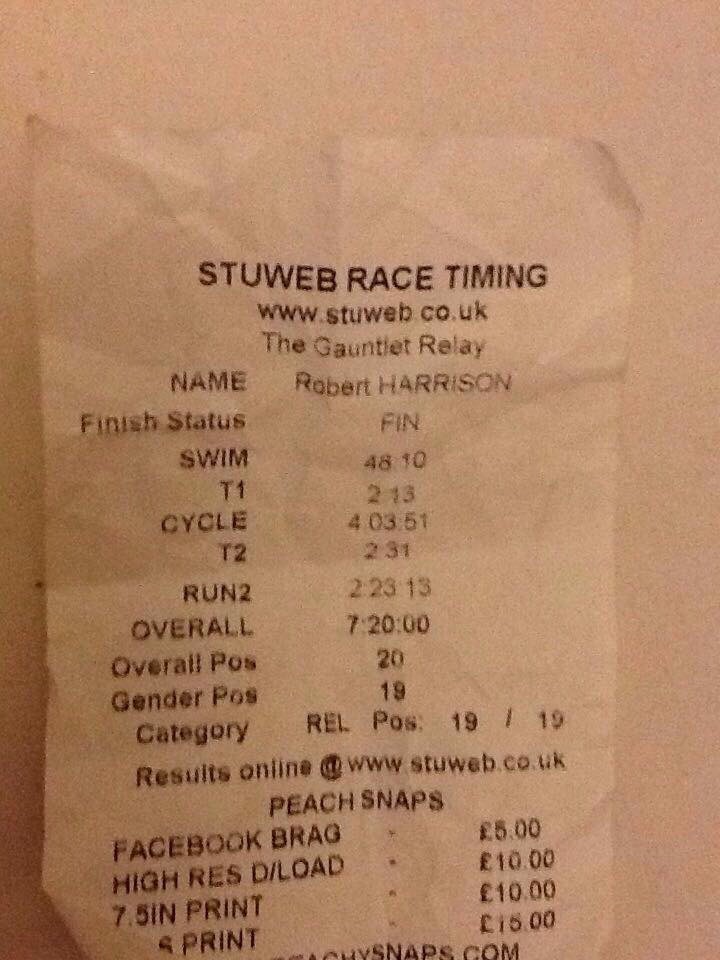The run is always going to be where I do the majority of the work, but my first 4k loop was slightly hampered by still not being able to feel my feet. Still, I can hobble like a pro. 34:15 is way off my usual blistering pace but it was enough to make me one of the quicker runners on the day. Confession: I may have injured a small child on the finish. Moral of the story: don’t high five someone performing a rapid downhill sprint finish. Non, je ne regrette rien.